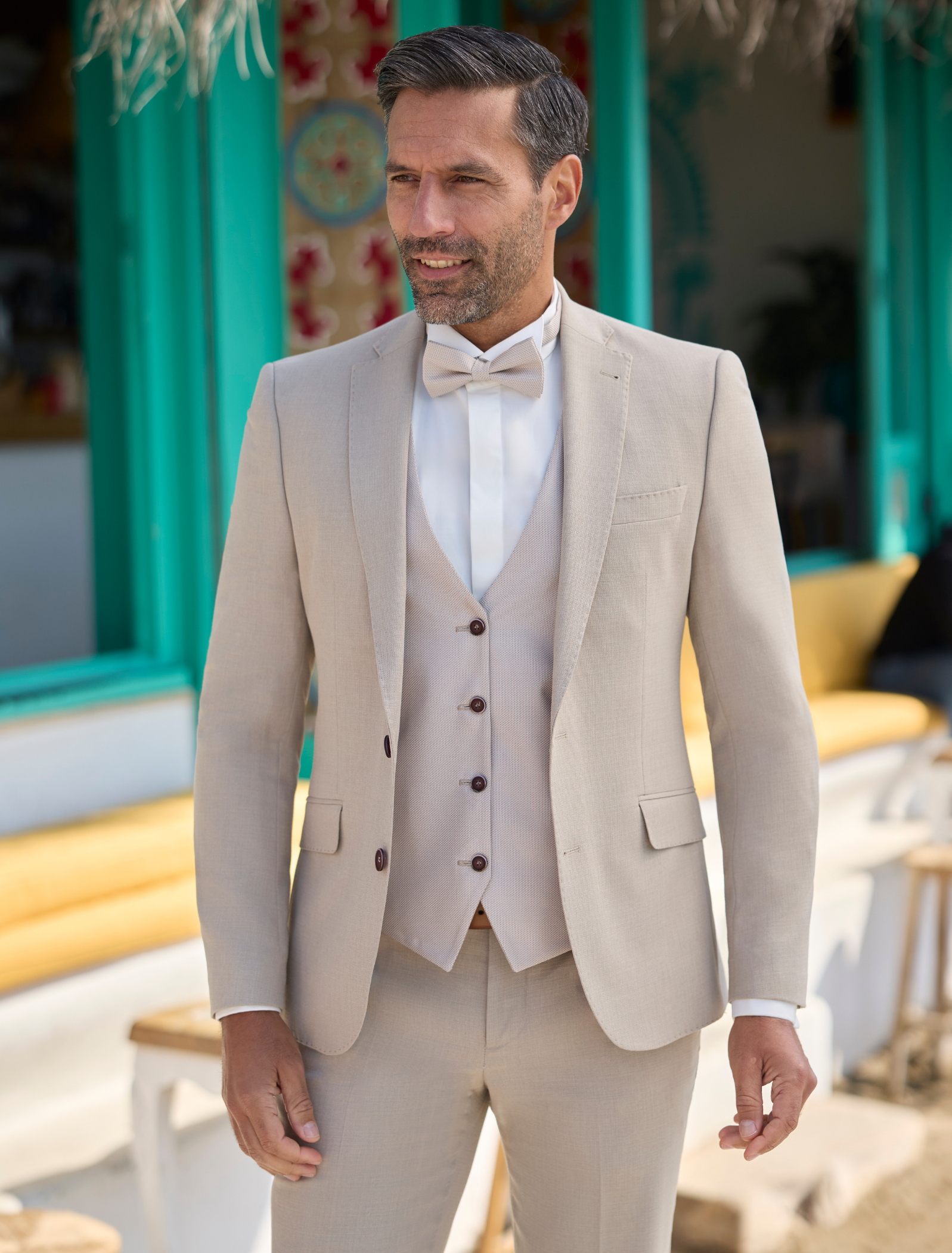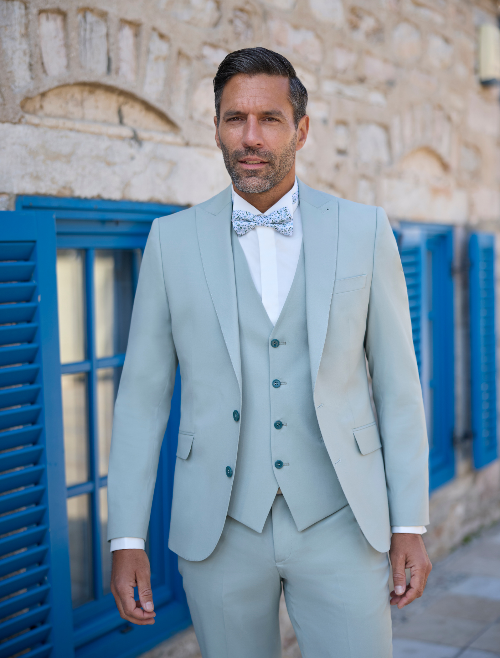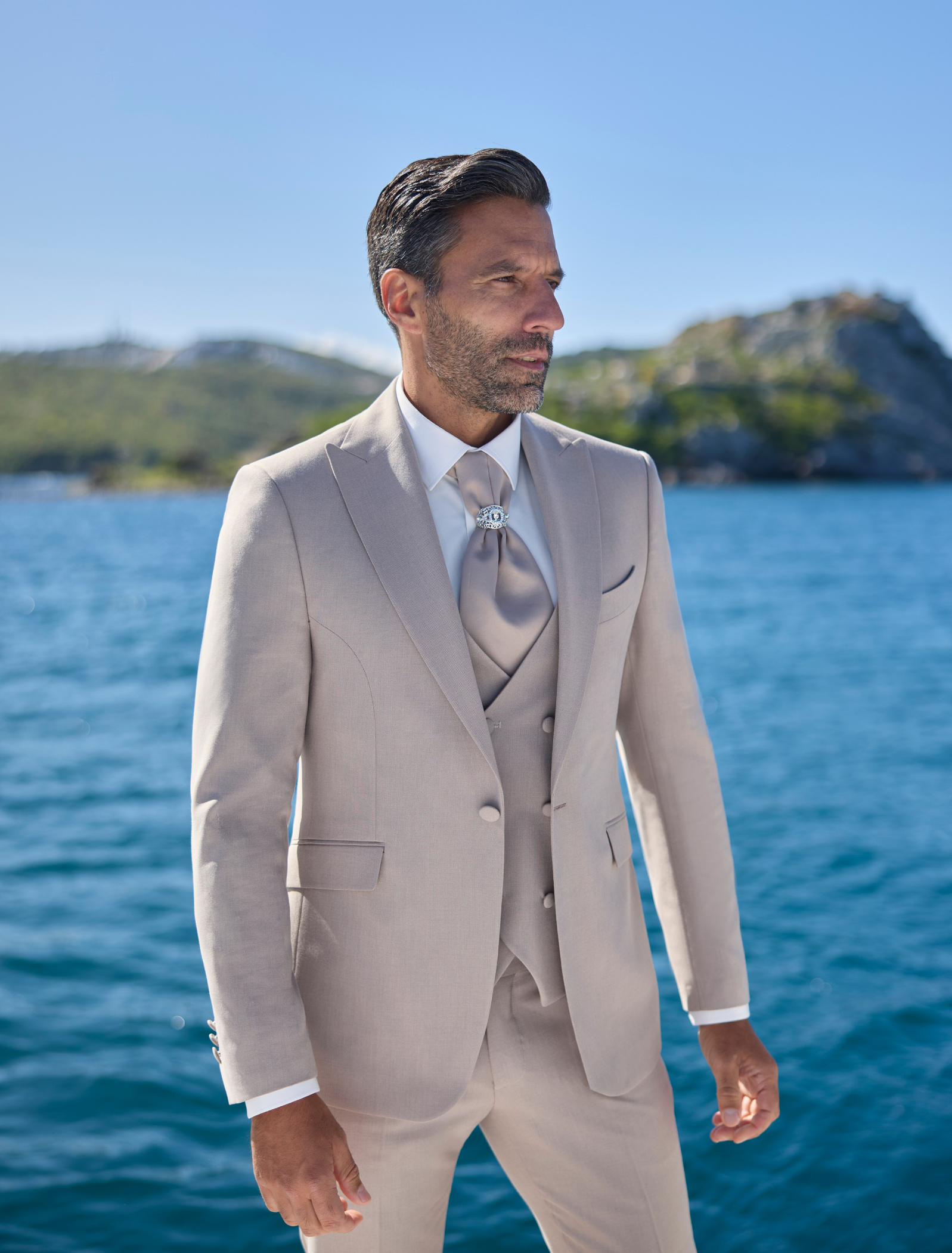 Nos costumes sont disponibles dans une gamme de taille qui garantit un ajustement parfait pour chaque marié.